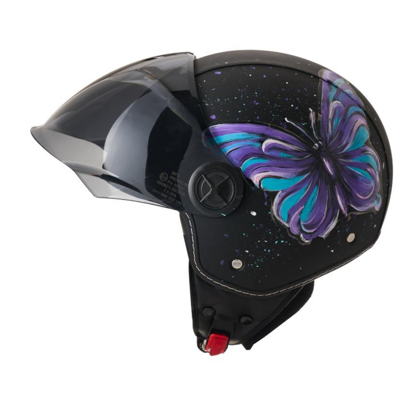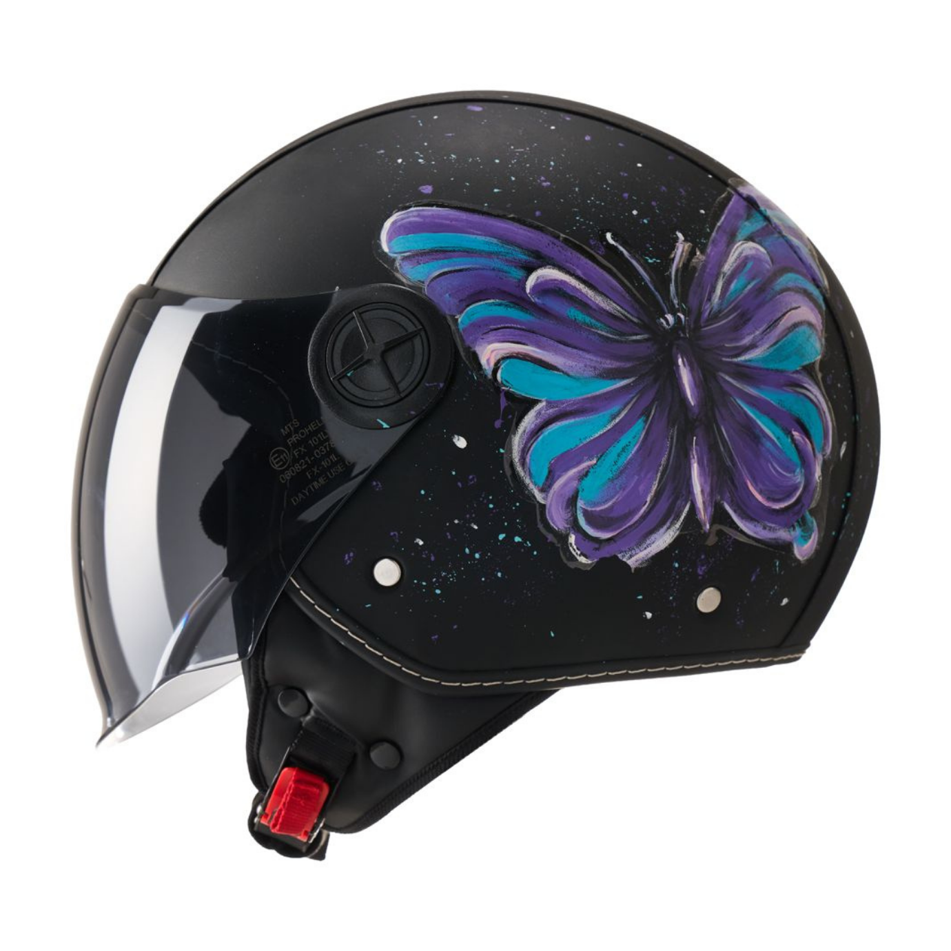İster şehir içinde günlük sürüşlerinizde, ister hafta sonu gezilerinizde, bu el boyaması kelebek tasarımlı kask ile güvenliğinizden ödün vermeden stilinizi konuşturun.
