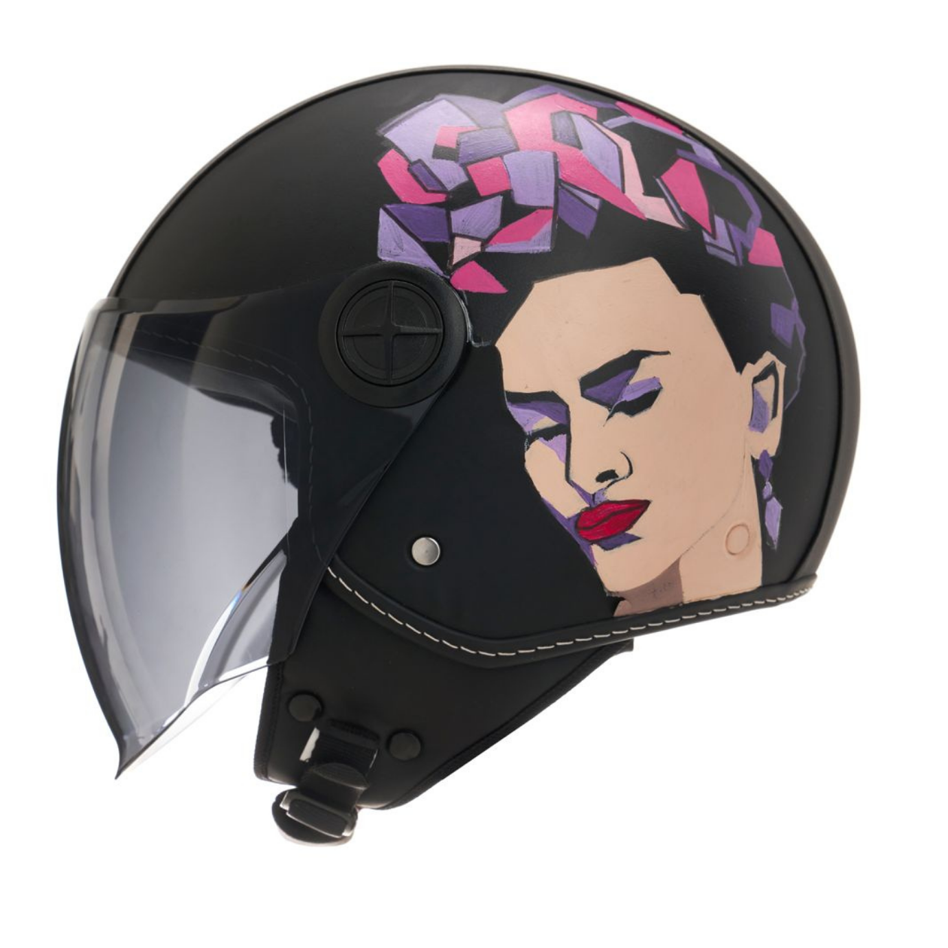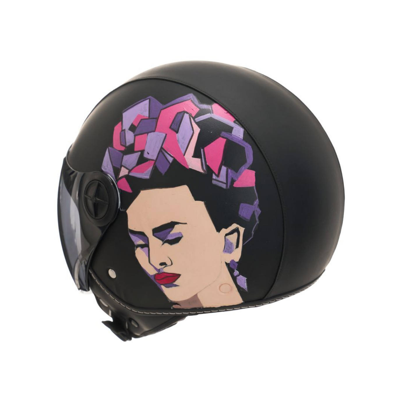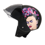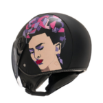Frida’dan ilham alan tamamı elle çizilmiş sanatsal kadın figürü ile tasarlanan bu premium motosiklet kaskı, her biri özgün karakter taşıyan özel bir üründür. Siyah mat zemin üzerine el çizimi olarak uygulanan illüstrasyon, kaska benzersiz ve koleksiyon değeri yüksek bir görünüm kazandırır. Darbelere karşı dayanıklı dış kabuğu, konforlu iç pedleri ve açılır–kapanır vizörü ile şehir içi motosiklet sürüşlerinde hem güvenlik hem de stil sunar.