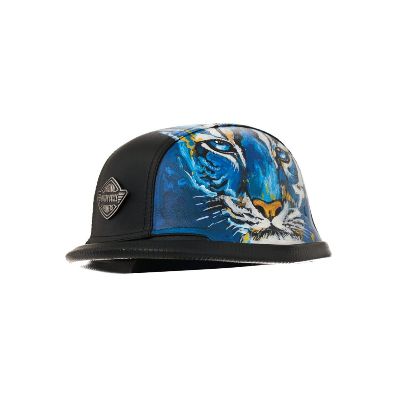 İçinizdeki vahşi ruhu yollara taşıyın! Özel tasarım “Mavi Kaplan” desenli bu yarım kask, klasik motosiklet stilini sanatsal bir dokunuşla yeniden yorumluyor. Siyah deri dokulu dış yüzeyi, kaska sofistike ve asi bir hava katarken; yan yüzeye işlenmiş, fırça darbesi efektli mavi kaplan portresi, detayları ve canlı mavi tonlarıyla büyüleyici bir görünüm sunar. Kaplanın keskin bakışları, trafikteki duruşunuza güç katacak.